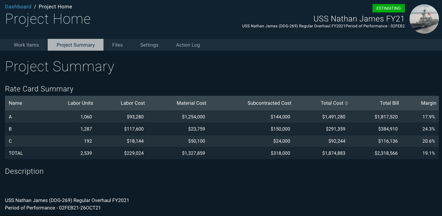 Streamline estimates for shipbuilding, repairs, and overhauls.