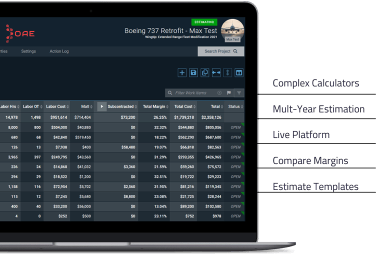 Supports cost modeling per development phase, production build, or long-life sustainment contracts. OAE’s structure accommodates inflation, tooling amortization, and staged funding, all rolled up automatically.